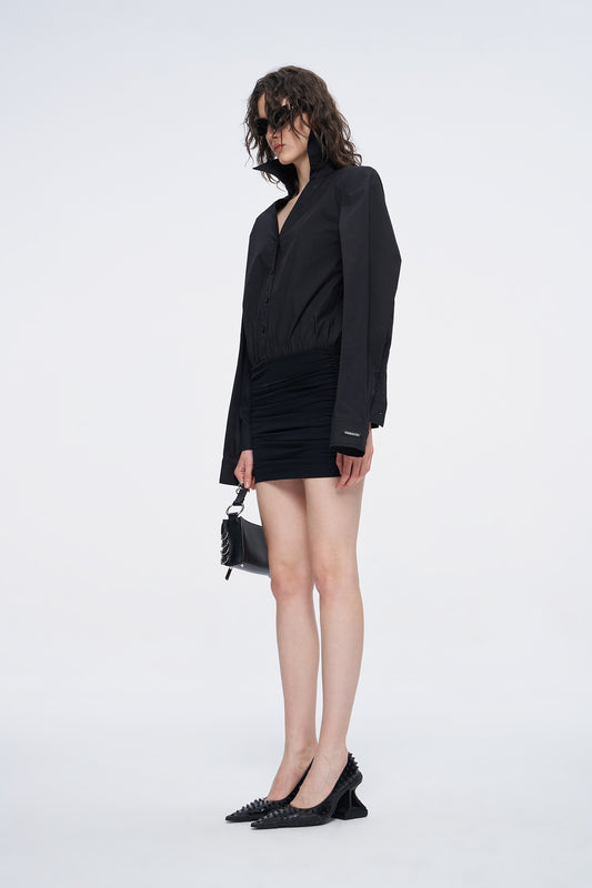 Bone pleated V-waist fishtail skirt