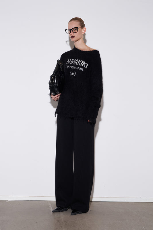 Camel wool slanted shoulder logo jacquard sweater
