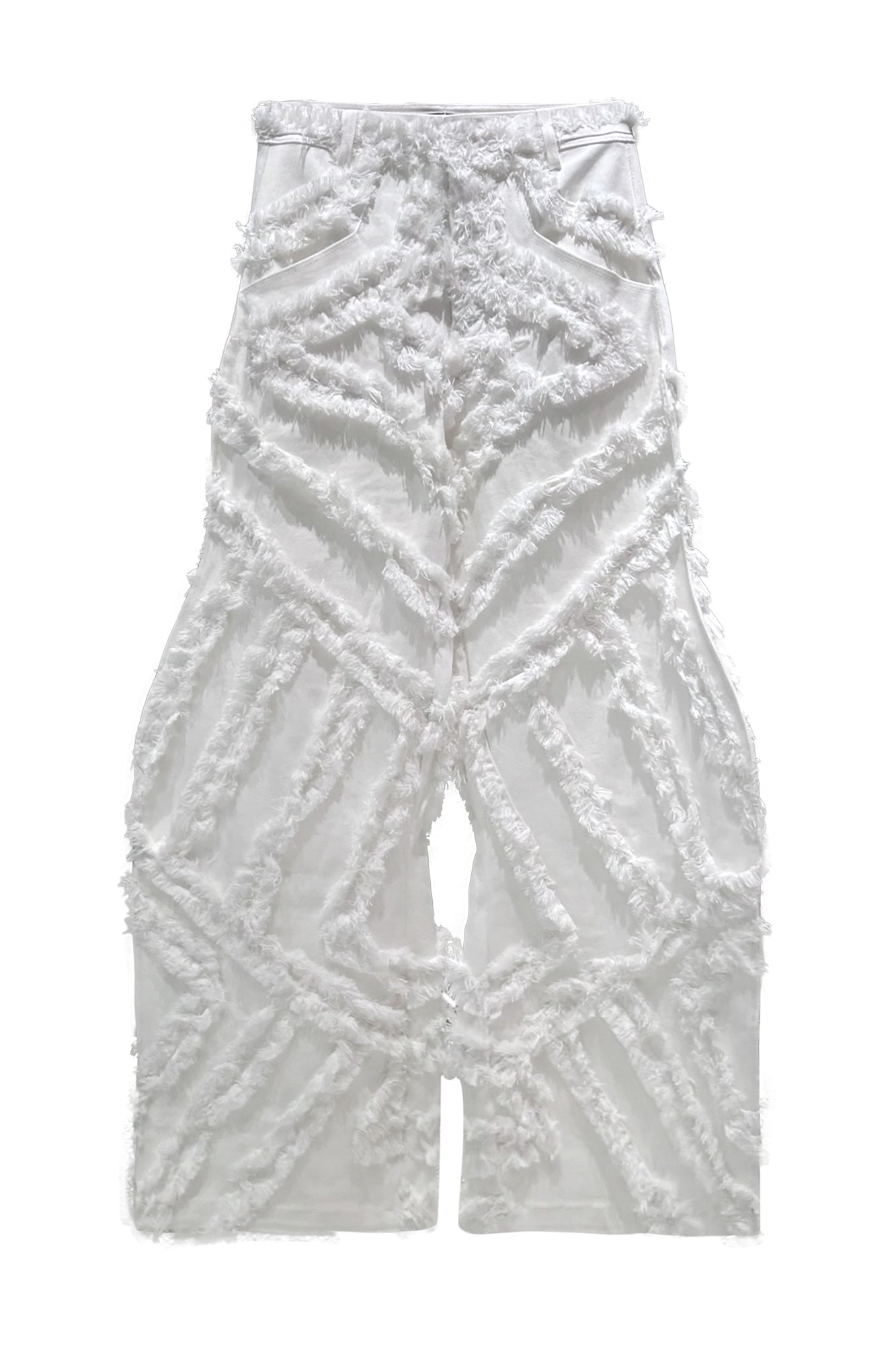 Fractional-wave pants with raw edge