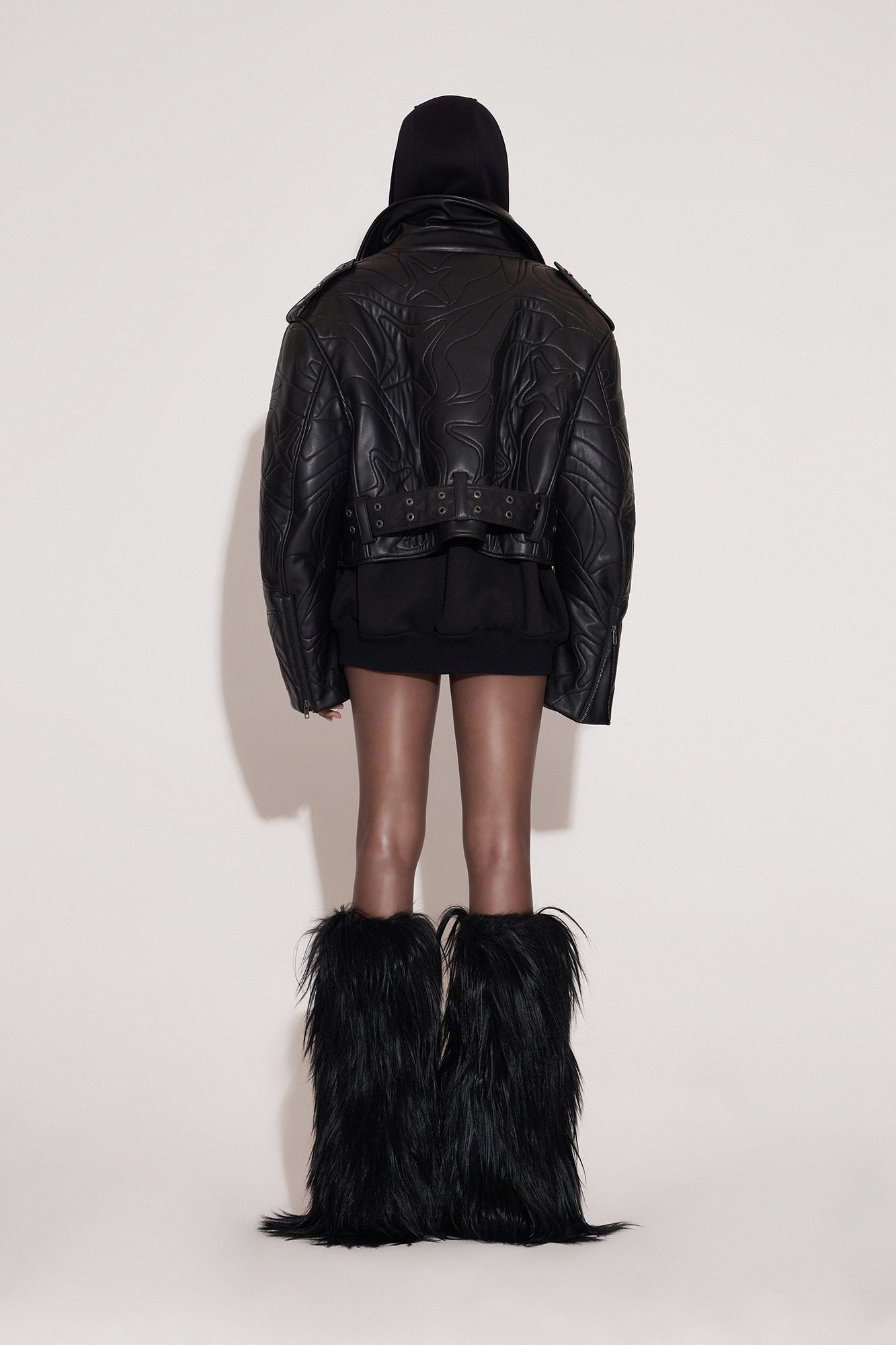 Four-pointed star 3D stitching leather jacket