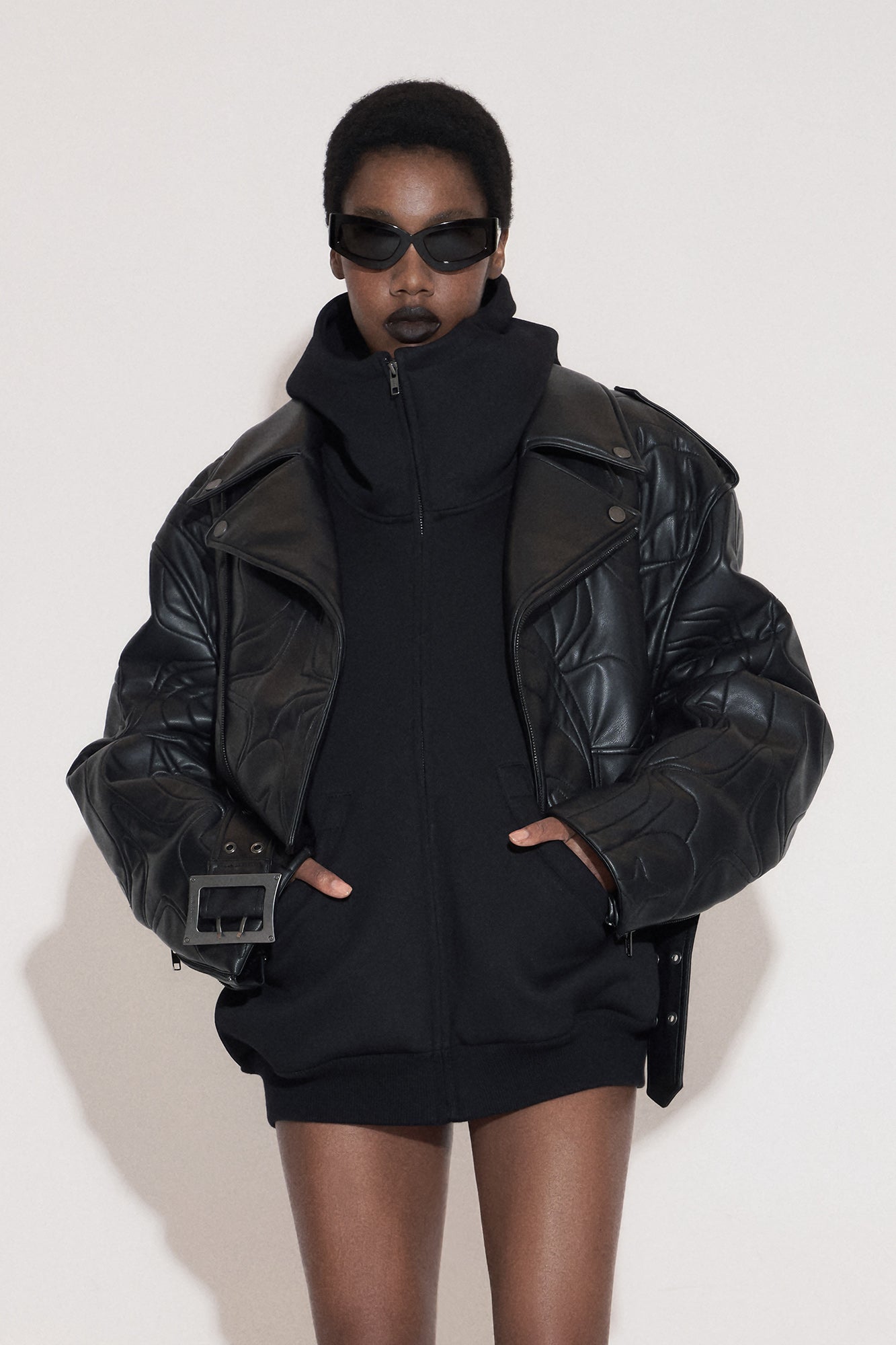 .The cuffs are equipped with zippers, which are convenient for adjusting the tightness of the cuffs, and also add a touch of coolness and functionality to the overall design.